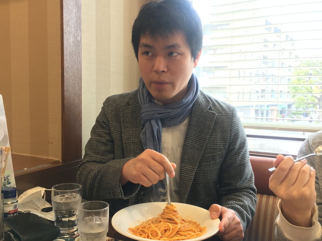 カニのパスタを食べる四柳さん。