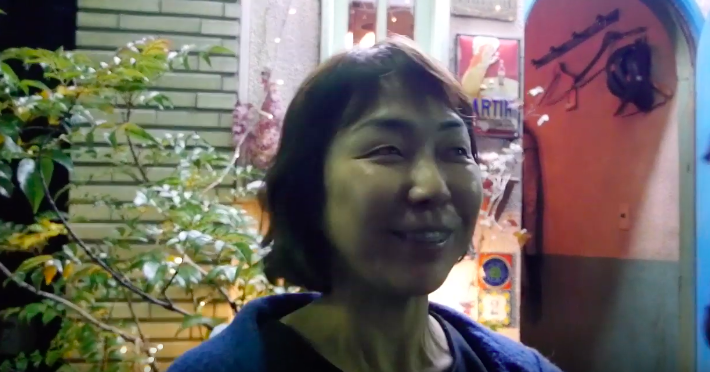──ここは渋谷じゃなくて、下北沢なんですけど。もともと実家が下北にあって。で、ここの通りで、ここのお店の中で結婚式をした、思い出の場所です。でも、離婚してます。ふふ。