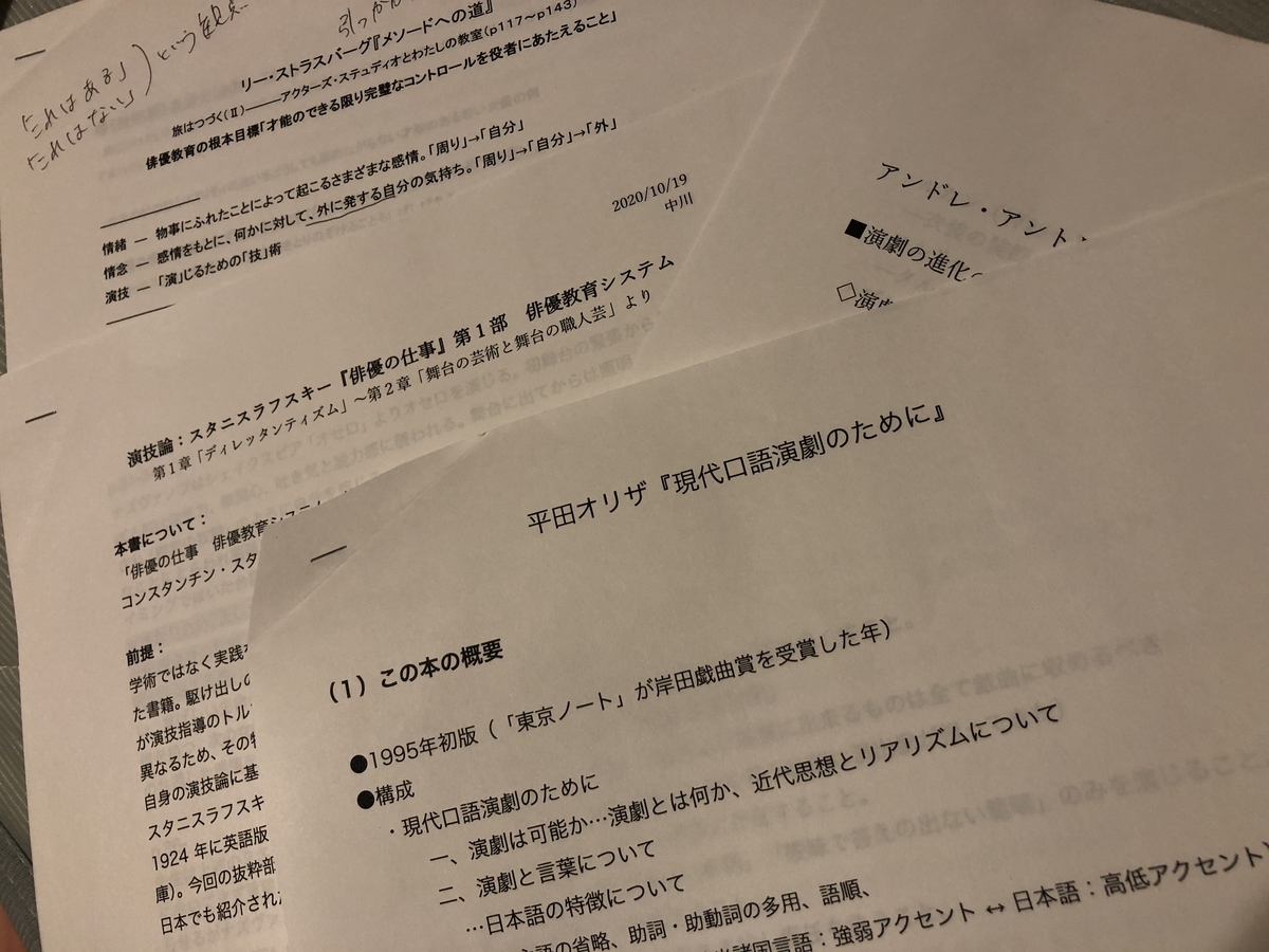 ゼミの内容的に、数回積み重ねた上でレポートを書いた方が理解が深まるのではないか?と思ってここまで寝かせていたのだけれど、実は回を重ねるごとに古今東西様々な演技論・演技術が頭の中を巡り巡って頭の中がより混乱を来している気がしてならない。